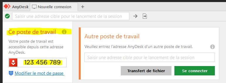 Une fois Anydesk installé et lancé sur les 2 ordinateurs, la personne qui est aidée doit fournir à celle qui l’aide le numéro (souvent à 9 chiffres) de son poste de travail :