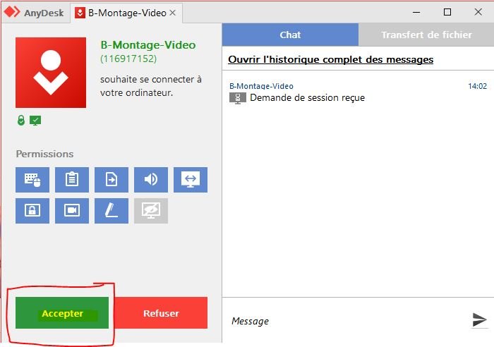 Il ne reste plus qu’à la personne qui est aidée, d’accepter la connexion à distance, en cliquant sur Accepter :