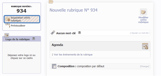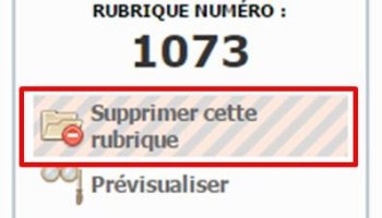 Une rubrique peut être supprimée uniquement si elle ne contient aucun article, ni document, dans ce cas « Supprimer cette rubrique » est affiché en haut de l’écran.