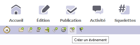 - Cliquer sur le bouton [Créer un événement] dans le bandeau supérieur de la partie rédacteur :