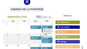 Vos horaires sont maintenant disponibles sur votre agenda de paroisse, avec le lieu qui apparait lorsque la souris survole l’évènement :