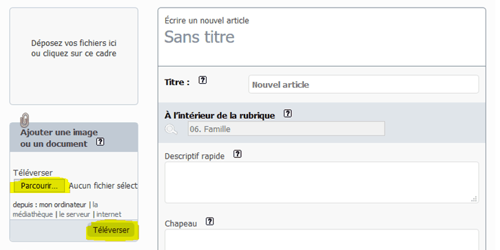 cliquez sur téléverser pour l’envoyer sur votre site