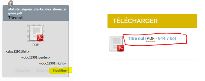 Le document apparait alors sur la gauche, vous pouvez cliquer sur Modifier afin de changer le titre du document, car le titre sera affiché en ligne :